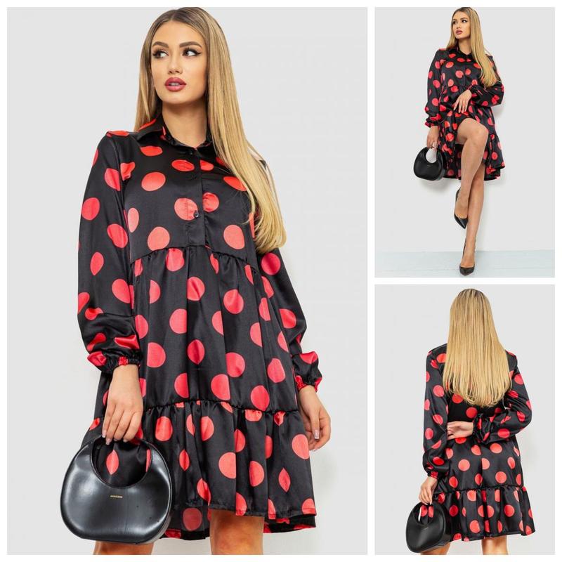 Сукня у горох, 214RS788-2 💥Материал : Сатин 💥Размер : L, M, S, XL 💥Цвет: Бело-синий, Черно-красный 💥Цена : 455 грн