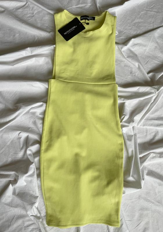 Силуетна сукня лимонного кольору. С интересными разрезами под подмышками. Новая, с биркой.