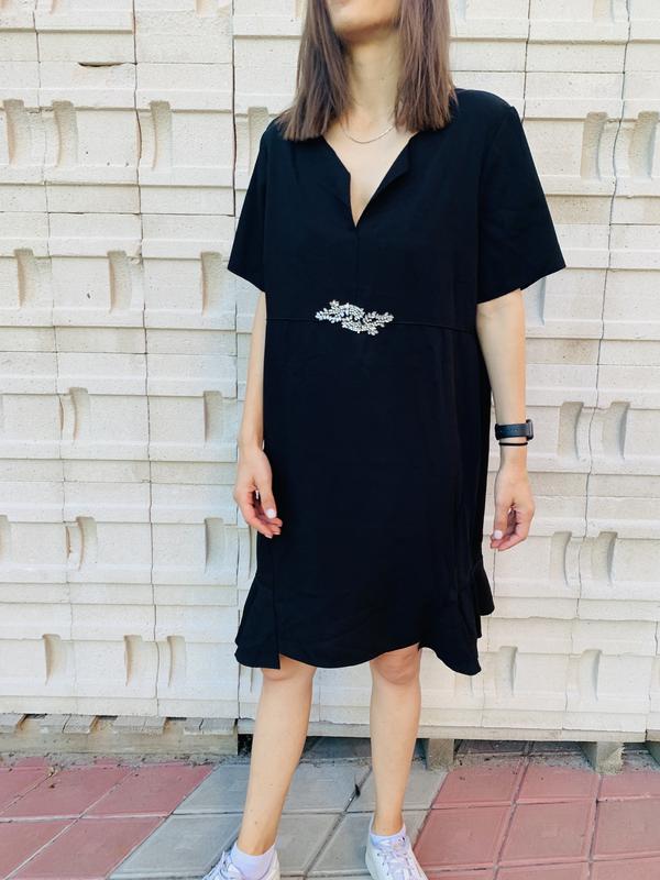 Платье черного кольра, на теле визырунок из камушков. Вещь новая, с биркой. Рост модели 170. Наденто на размер S