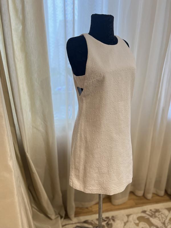 Оригінальна біла сукня, на підкладці. По спині прихована змійка-застібка. Розмір вказано м, йде на м/с. Заміри: довжина 78, пог 45, вільного крою. По грудях виточки
