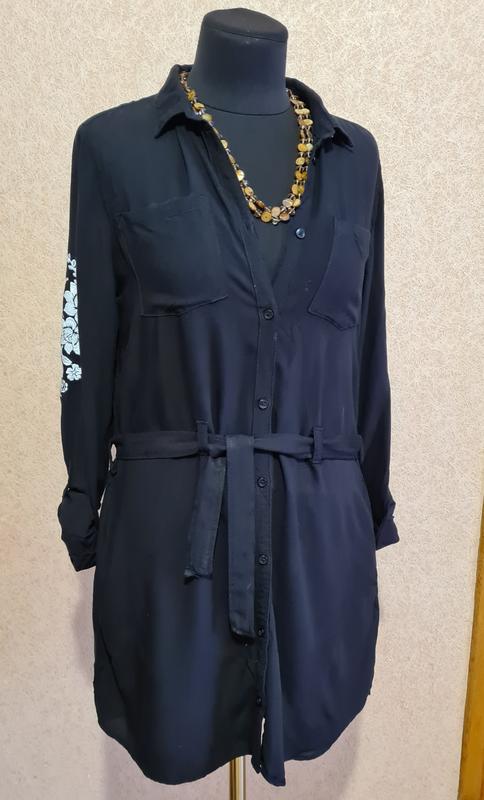 Плаття-рубашка з вишивкою. Стан нового. Розмір С, може бути на М. Рукави регулюються. Є поясочок