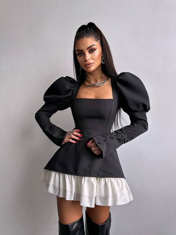 Вишукана сукня з об'ємними рукавами та спідницею з воланами, плаття міні з довгим рукавом