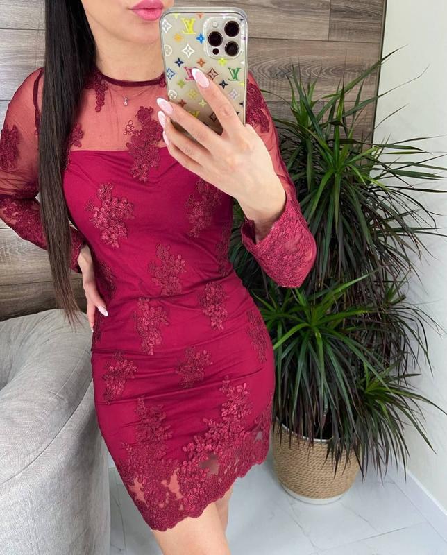 Платье (Фабричный Китай) ткань кружево мод.стан сзади молния длина подкладки 77 см рукав 66 см Размер 44(ог 90 от 74 об 95) . Не підійшов розмір