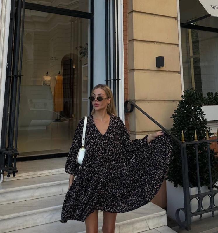 Модель цієї сукні виглядає однаково красиво як із модельним взуттям на підборах, так і зі спортивним взуттям на низькому ходу. Тканина: софт. Колір: чорний. Розмір: 42-48 (oversize)