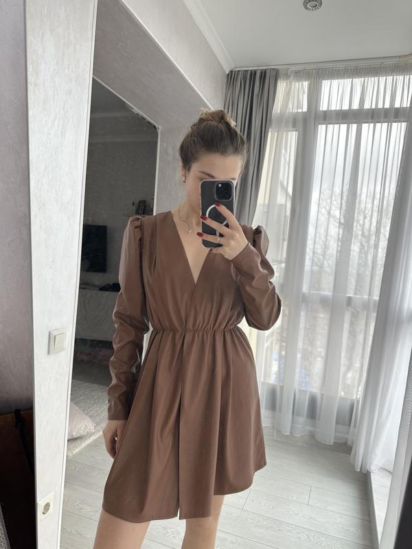 Екошкіра, довжина 83, ширина 34 (тягнеться резинка), довжина рукава 62 ( зверху фонариком)