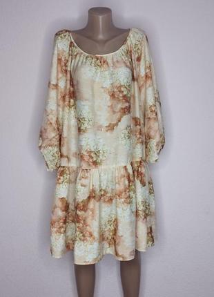 Очень красивое платье овер от H&M. Ткань в составе имеет 82%- вискозы и 18%- полиамида. Тонкая, шелковистая, воздушная, имеет немного жатую структуру. Не требует глажки. Состояние новой вещи, без нюансов. Настоящие цвета на фото 4,5.6. Размер указан М. Замеры: ПОГрудей-67 НОНизу-125 Длина рукава по нижнему шву- 33 от шеи- 57 Ширина рукава сверху -27 снизу -16 см. Длина по спинке -88 см.