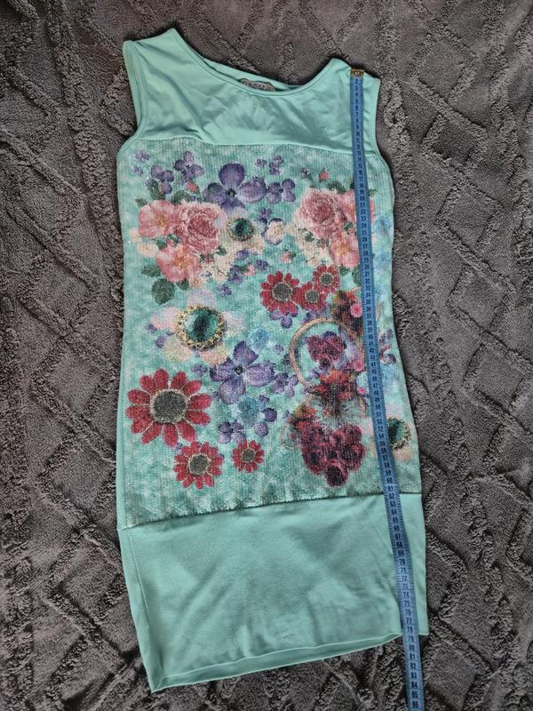Летнее платье бирюзового цвета хаки пайетками В отличном состоянии Дефектов нет Размер: S