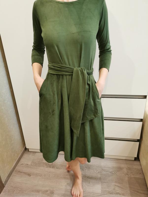 Сукня з замшевої тканини Розмір xc В ідеальному стані Смарагдового кольору Довжина 100 см ПОТ 35 см ПОГ 43 см Рукав від плеча 46 см Додаткові фото і заміри надам при потребі