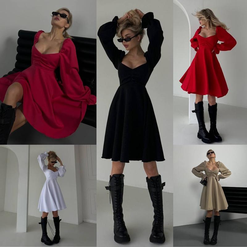 Сукня арт. sat. 5432 Кольори: мокко, червоний, чорний, барбі та білий Розміри: S, M, L, XL Матеріал: костюмний креп Ця сукня втілення легкості та романтизму. Модель з довгими рукавами, застібається на потайну блискавку. Рукава та плечики на резинці, у зоні декольте збірка. Відмінна якість.