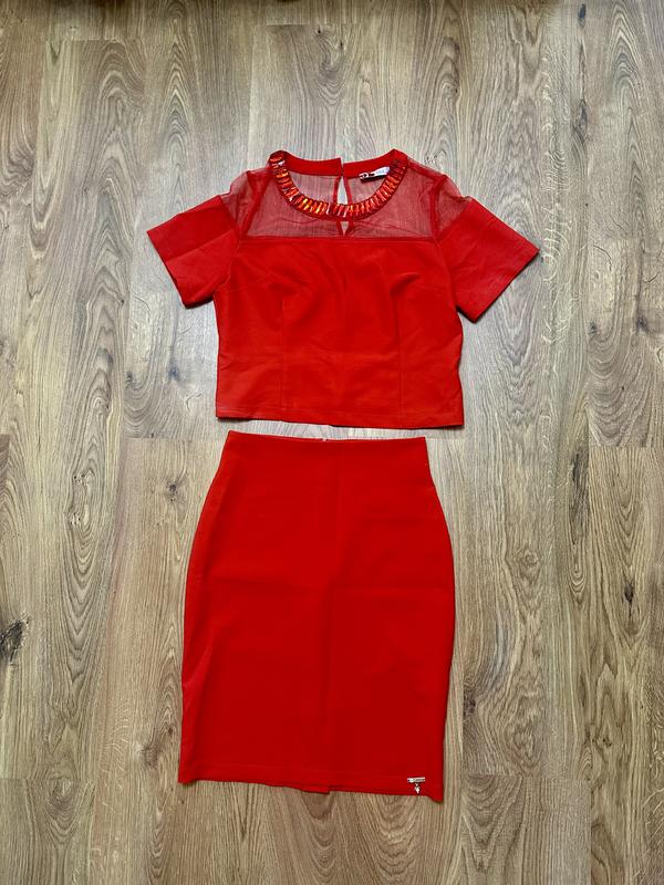 Топ: довжина 47 см, обхват грудей 92-100 см, талія 86-96 см Спідниця: талія 68-70 см, бедра 84-90 см, довжина 55 см