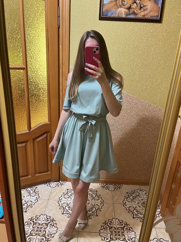 Продам сукню, розмір м але іде на s На талії резинка, має поясок, юбка тримає форму, довжина 86 см, колір мятний
