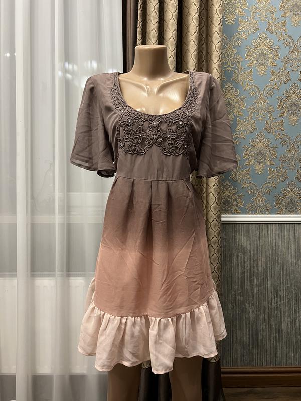 Плаття омбре персиково-шоколадне, довжина 80 см, плечі 40 см, талія 40 см (тягнеться до 50 см), груди 50 см. Склад-поліестер. Розмір S/M.