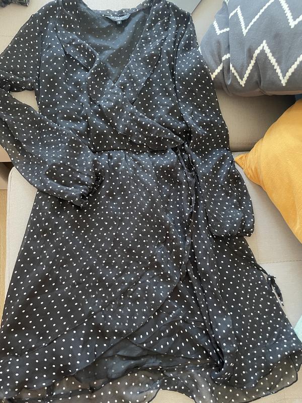 Шифонова, легка сукня на зАпах в горошок, дуже делікатна і ніжна Довжина сукні 93см Пояс на резиночці Довжина рукава 60см Ширина плеч 40см