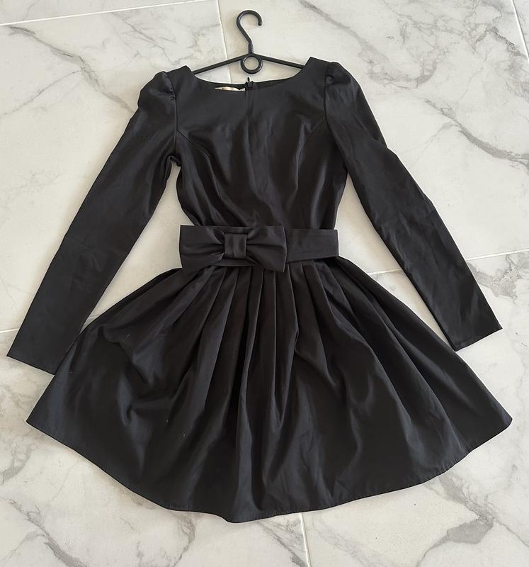 Женское платье мини с рукавами, приталенное, со съемным поясом-бантом в комплекте, и расклешенная юбка