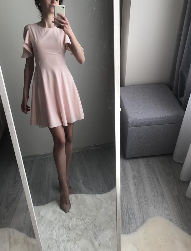 Плаття ніжного пудрового кольору. Довжина - міні. Сукня красива, святкова, гарно підкреслює фігуру і видовжує ніжки. Шила на замовлення. Підійде на розмір XS, 34.