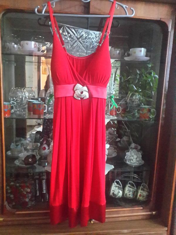 Ошатнішою платтячко на бретельках які що регулюються. В бюст чашечки вшиті. В хорошому стані, одягалося лише кілька разів. Є маленький ньюанс, при носінні зовсім на помітний.