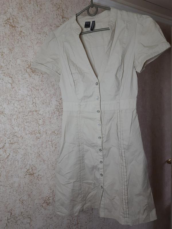 Летнее платье Mango, в отличном состоянии. Хлопок. Застегивается на пуговицы, есть 2 кармашка по бокам. Замеры по изделию: длина 87 см, талия полуобхват 34 см, бедра полуобхват 43 см., под подмышками полуобхват 42 см, плечи 36 см.