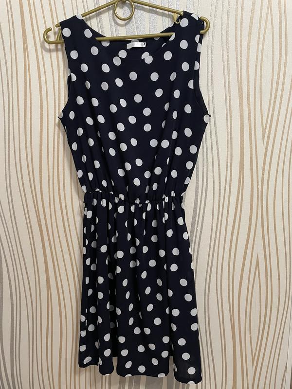 Сукня 👗 Темно-синього кольору в горошок Розмір 44-46 Без поясочка Деталі в особисті повідомлення