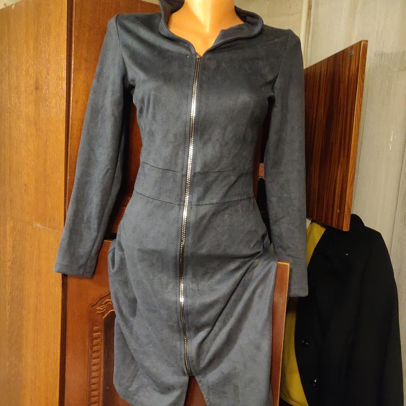 Платье искусственное замша Идеальный вариант на весну и осень) Одягалась 1 раз Замеры: Полуобхват плеч: 37 см ПОГ: 42 см ПОТ: 39 см ПОБ: 48 см Рукав: 58 см Длина по спине: 93 см
