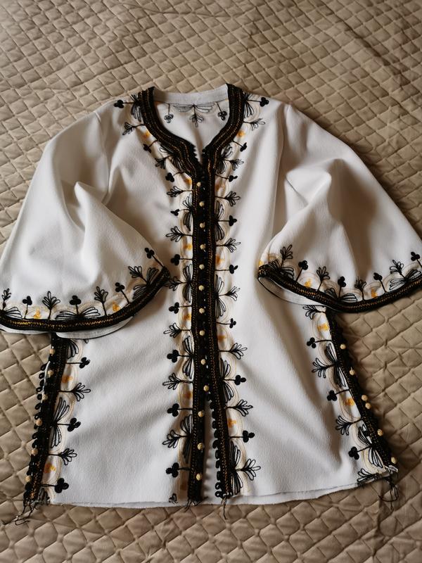 Вишита туніка в гарному білому кольорі (фото не передає). Є нюанс по низу останнє фото. Довжина 75см, пог та пот 50см.