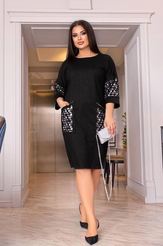 Сукня Модель: 9068 Цена: 1400грн Размеры: 50, 52, 54, 56 Ткань: Креп-дайвинг, напыление с перфорацией. Отделка серебром Замеры: 50: ОГ 110 см, ОБ 116 см, длина 102 см 52: ОГ 114 см, ОБ 120 см, длина 103 см 54: ОГ 118 см, ОБ 124 см, длина 104 см 56: ОГ 122 см, ОБ 128 см, длина 105 см