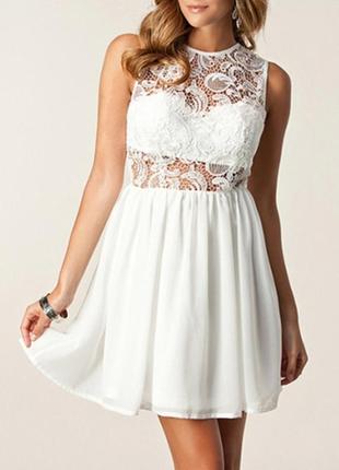 Нарядное платье с сетевым верхом. Низ шифон. Открытая спина. Лиф с силиконовой полоской. Состояние новой вещи. Довжина 87 см, пот 37 см, пог 48 см.