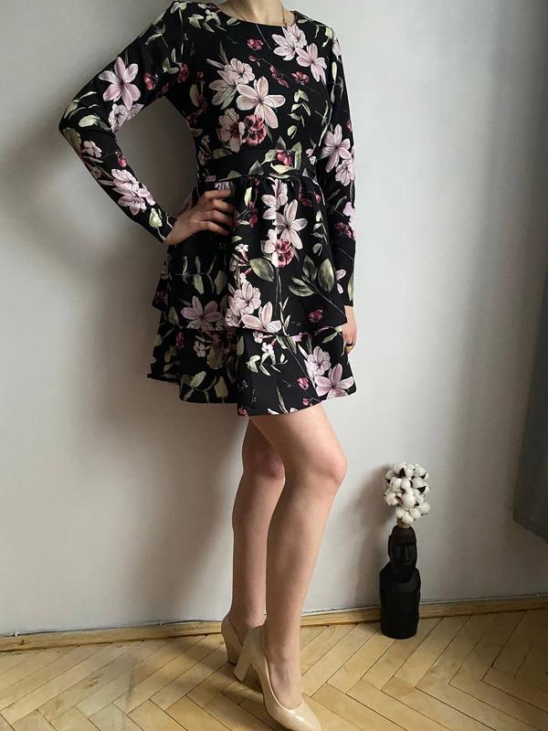 Чорна сукня з квітковим принтом з цупкої тканини від MOXITO. Розмір xs. зріст на фото : 172см.