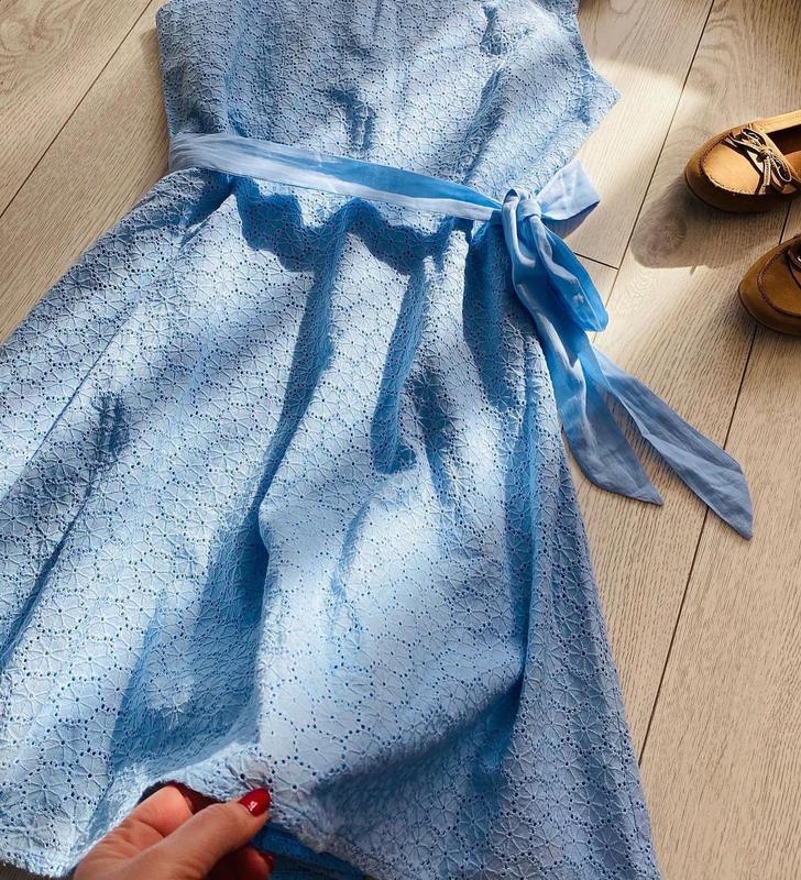 Стан ідеальний. Якість на висоті. 100% котон. Дуже гарно та ніжно виглядає на тілі. Довжина від плеча 87 Груди 46 Талія 39 Талію можна вужче за рахунок пояса