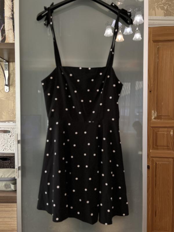Коротенька жіноча сукня у горох. У гарному стані. За довжиною - 66 см (на фото) Розмір xs-s.