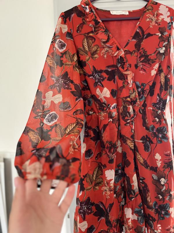 Шикарне плаття в принт,знизу підкладка, рукави прозорі. Вказаний розмір ХЛ, але підійде на М та Л. Стан нового