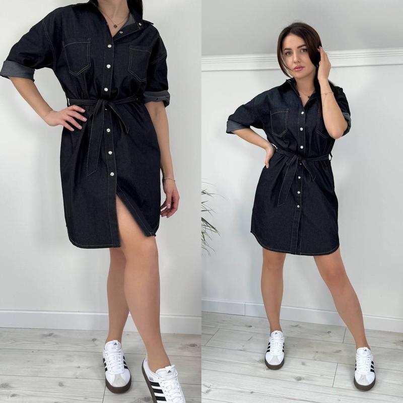 Платье (442) ▫️Тканина джинс котон ▫️Цвет черный, синий ▫️Размер 42-44,46-48,50-52 ▫️Цена 865 грн Платье рубашка, рукав 3/4, застежка на кнопки, с поясом