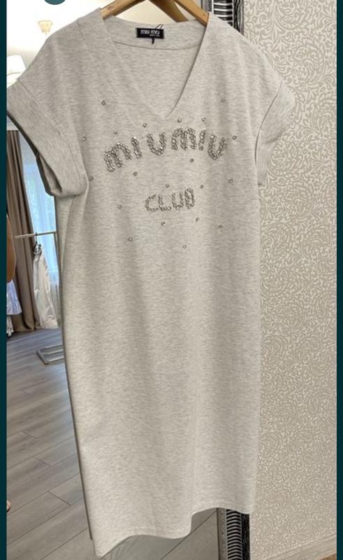 Плаття з м'якого трикотажу в сірому кольорі.Декор зі стразів і скляруса Якість люкс Натуральний склад Розмір Л