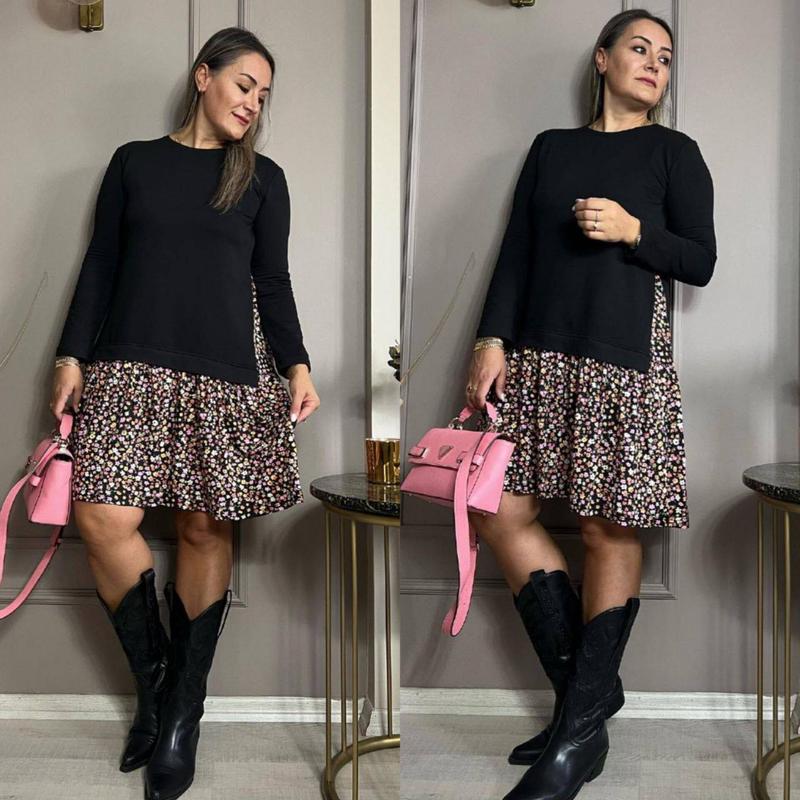 💎Сукня⚡️ Модель: 129 🍀Размер: 50-52, 54-56, 58-60 🌺Цена: 1100грн Цвет: черный Ткань: микродайвинг+ софт Платье интересного кроя. Подчеркивает преимущества, скрывает недостатки. Рукав 3/4. Верх платья красиво тянется. Подойдет под любую обувь.