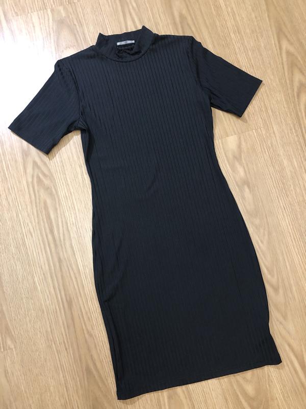 Чорна сукня, в смугу. Тягнеться. Заміри: довжина 95 см, в талії 34 см, плечі 39 см. Не одягнула ні разу.