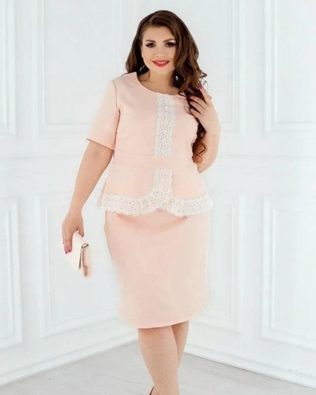 Костюм ніжного кольору з якісним мереживом. Костюмна тканина. Вказано 52 розмір, орієнтуйтеся на заміри.