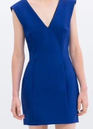 Женское платье Zara, размер S, королевский синий, облегающее, с V-образным вырезом, стрейч сзади замеры длина-84см ширина по груди-39см талия-35см бёдра-41см