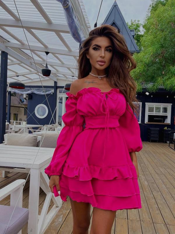 Сукня 🫶 Сукня в стилі міні з воланами❤️ідеально підкреслить вашу жіночність та ніжність,шнурівка по спинці зробить більш витонченою вашу талію✨ ▪️Модель: 216 ▫️Розмір: S-M; M-L ▪️Тканина: креп костюмка ▫️Колір: чорний; малина; блакитний; пудра ▪Ціна: 1150грн