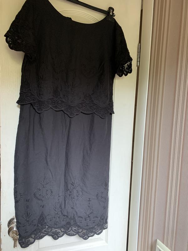 Шикарне плаття від M&S. Колір насичений чорний. 100% Котон, підкладка теж котон. Розмір S, маленька М. Нове, лише міряла. Тісно мені. На груди 86-88. Заміри зроблю.