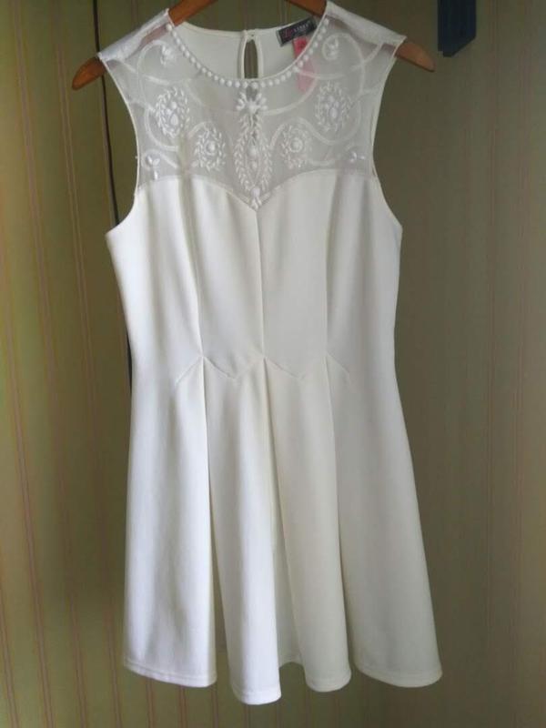 Біле плаття 5- 46-48 розмір Недоліки: декілька зацепок від троянд , практично не помітно.(на фото підкреслено)