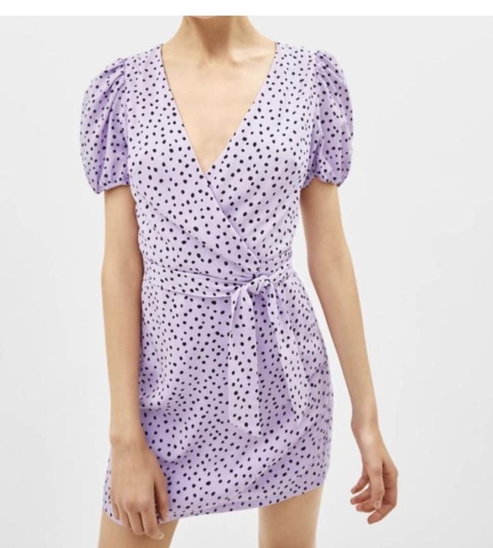 Бузкова сукня в горох від Bershka. Розмір С. Є маленький дефект на поясі (див. фото), можна зашити.