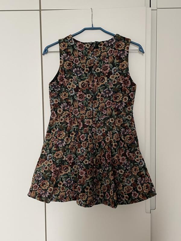 Сукня в квіти, ноу нейм) На підкладці. Защіпається ззаду ( по спинці) на непомітний замочок) Розмір С (хоча на бірці вказано розмір Л🙈 довжина 66 см ПОТ - 38 см