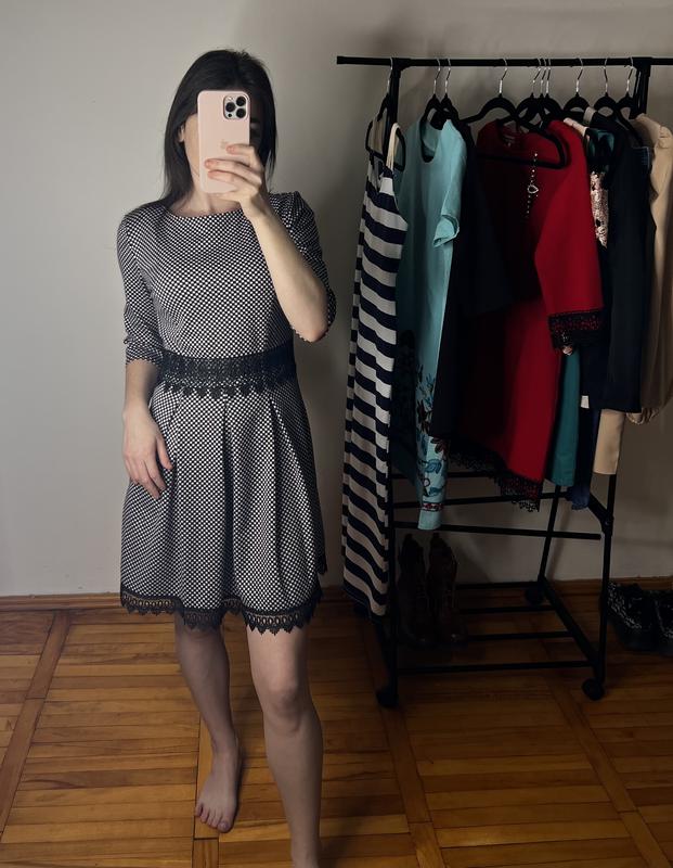 сукня в клітинку ( чорно- біла), з мереживом. Для додаткових фото та інформації звертайтесь в повідомлення