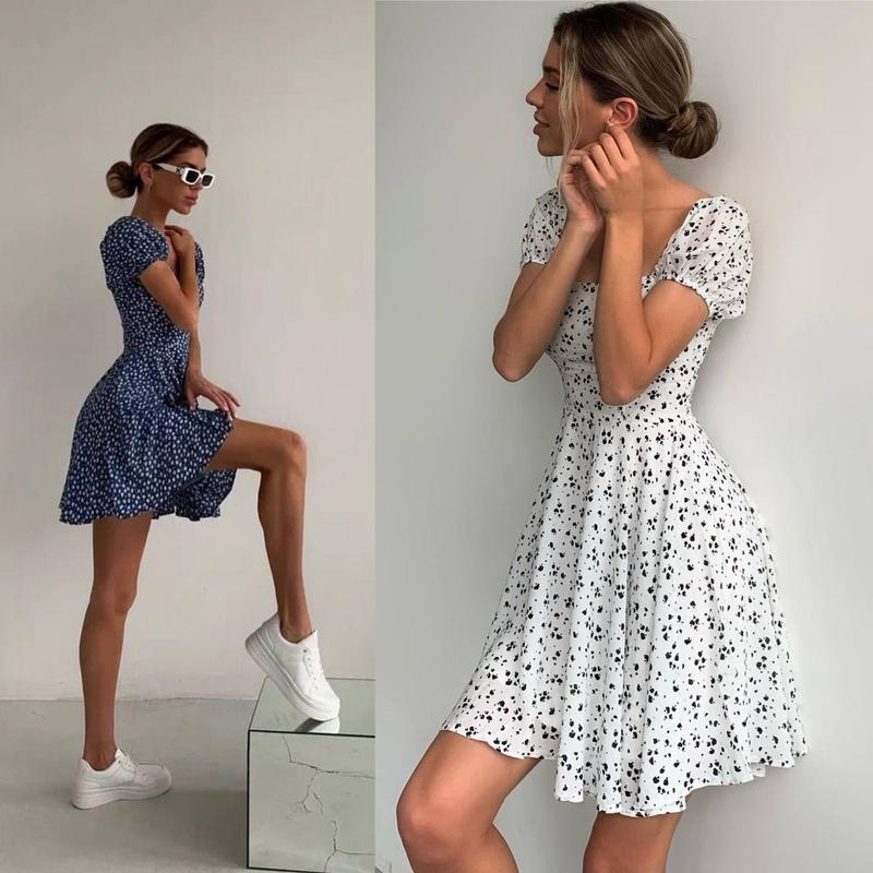 Літня сукня Колір: білий, чорний, темно-синій - червоний, м‘ятний, блакитний Розміри: 42-44, 44-46 Тканина: Супер Софт (принт може трохи відрізнятись) Довжина виробу 85см👌 Ціна: 360 грн