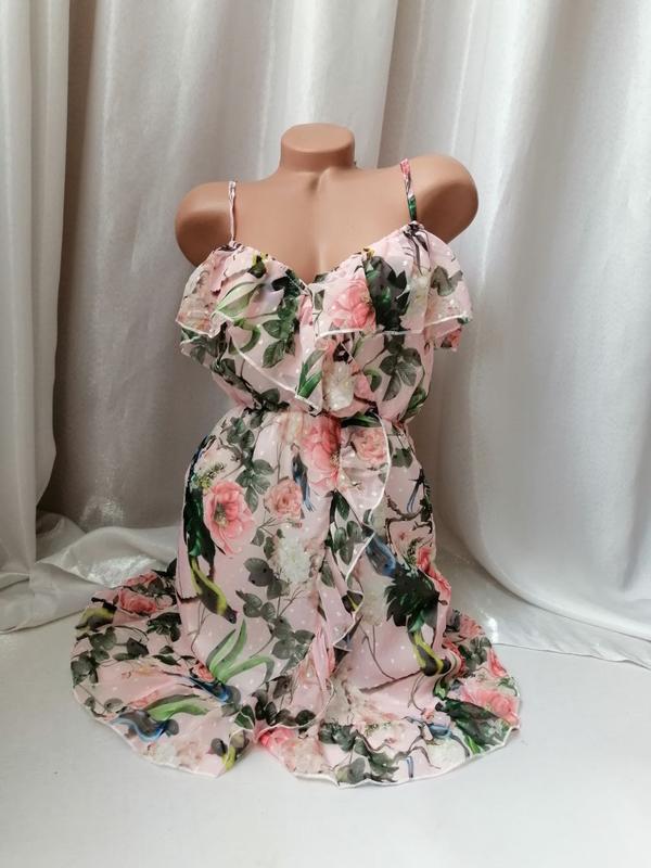 Дуже красива сукня з шифону квітковий принт можна носити у трьох варіантах закривши плечі...