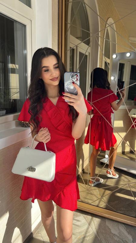 Кокетное летнее платье в горошек (0118) ▫️Цена 725 грн ▫️Тканина: софт принт ▫️Размеры: 42-44; 44-46 ▫️Цвета: мята, красный, белый, черный