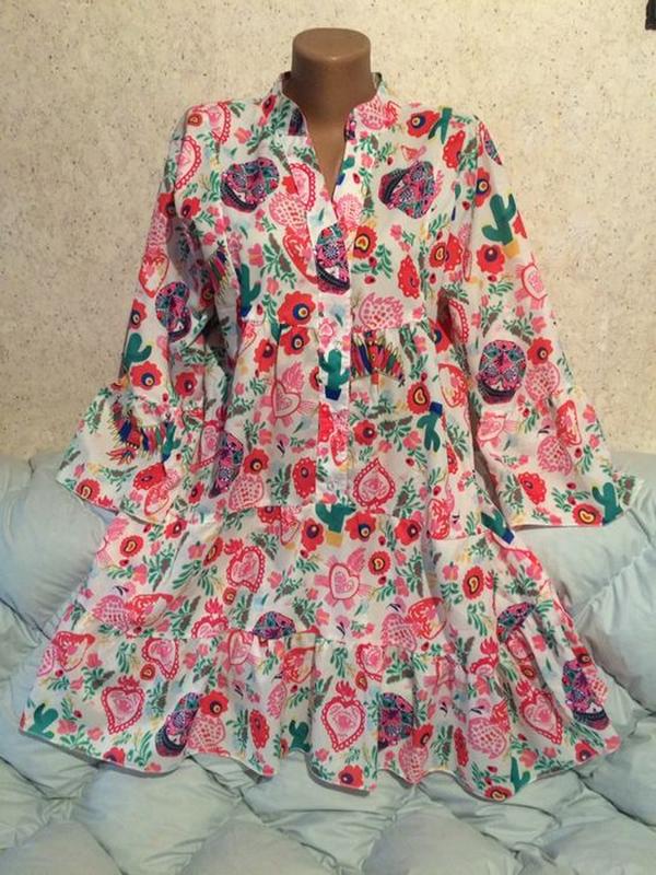Молодежные платья с ярусами размера М. Длина 88 см. ПОГ 50-54. Более короткие в трех цветах. Коттон 65% полиэстер 35%. Цена 385 грн. Новое состояние абсолютно. Ориентир размера по толщине руки в районе бицепс ПО бицепс 17 см. Платье трендовое ярусное со свободным облеганием должно быть свободное и будто большое