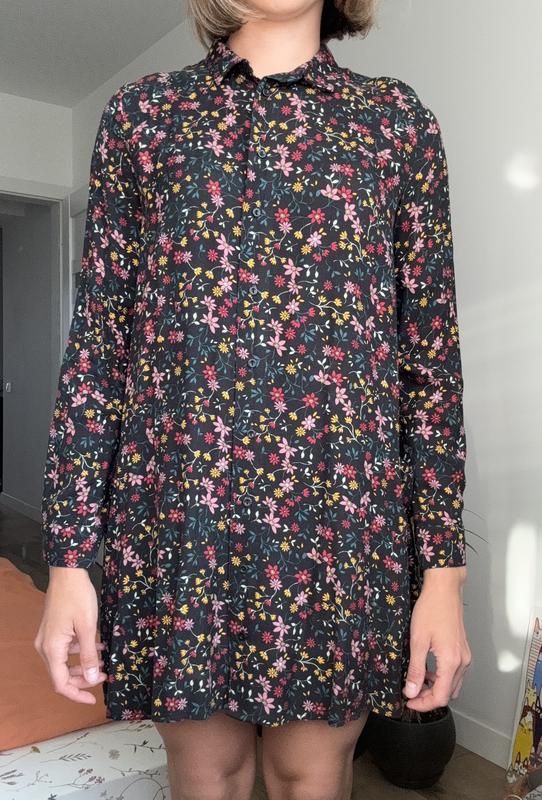 Сукня міні чорного кольору, з квітковим принтом Довжина сукні - 83 см Довжина рукава - 61 см