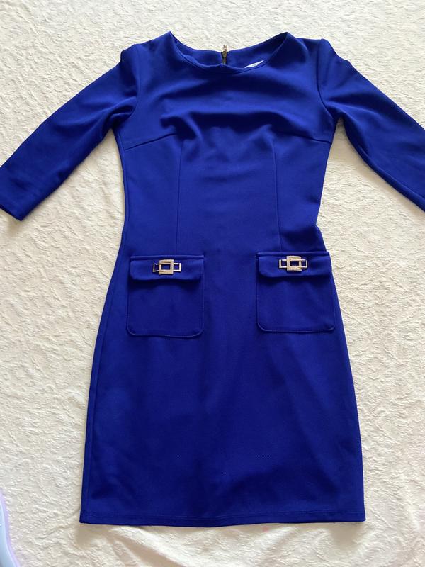 Сукня волошкового кольору, на спині красивий замок. Дуже красиво лягає по фігурі.