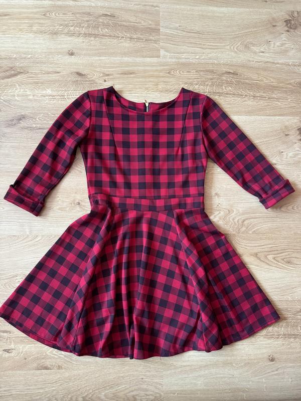 Сукня в клітинку, коротенька, красивий крій з акцентом на талії, ззаду є металевий замочок, рукав 3/4, трикотажна