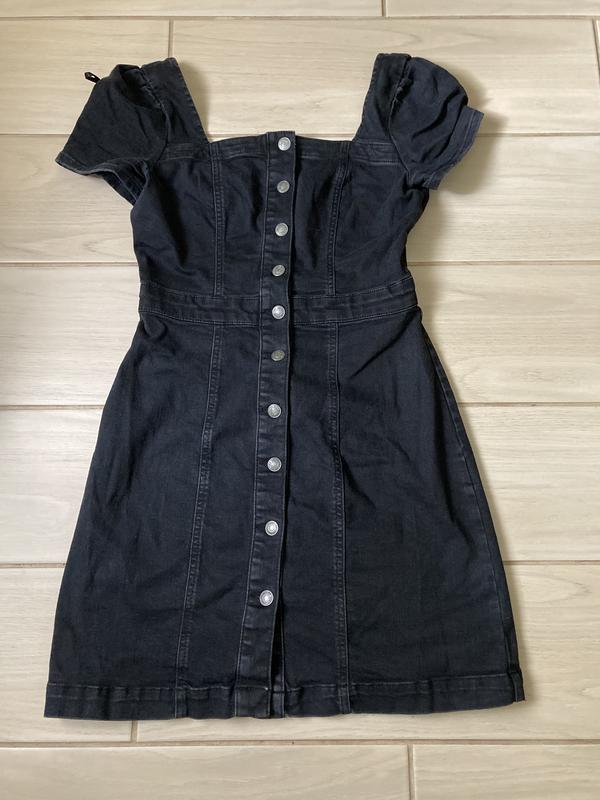 Трендовое джинсовое платье на пуговицах с квадратным вырезом эффектно смотрится на фигуре